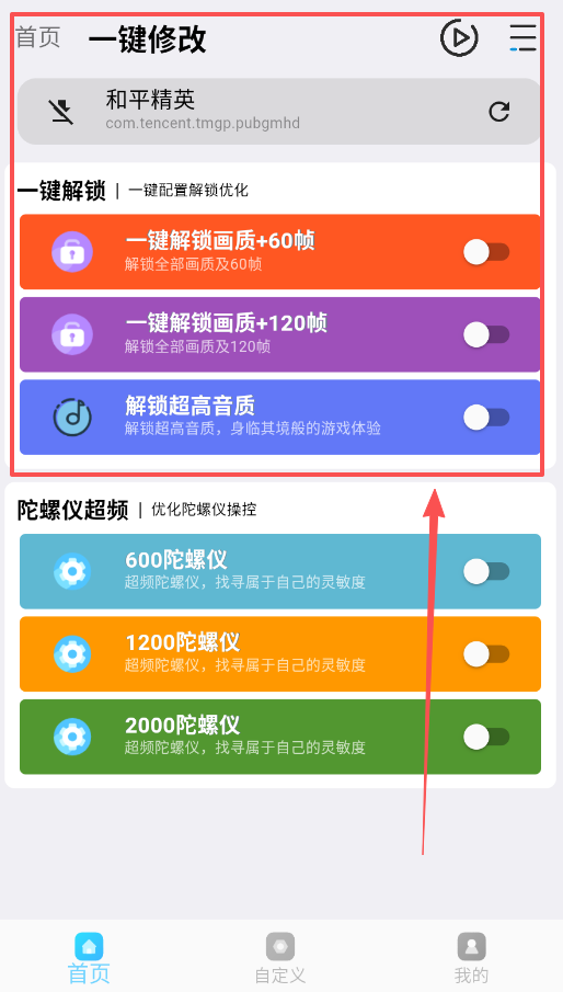 1、第一步,启动软件并确保网络正常,在首页找到“和平精英”下方的一键解锁选项,直接点击使用就能获得基础的画质提升。