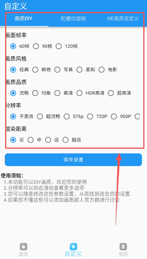 2、如果想自定义设置呢,可以切换到自定义页面,这里可以详细调整画面帧率,比如选60帧或120帧,还能改画质风格。