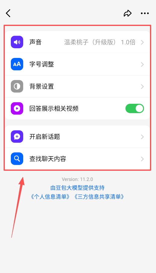 3、个性化设置让聊天更舒心,点击聊天界面右上角的设置图标,可以切换温柔桃子等不同声音,调整语速倍数。