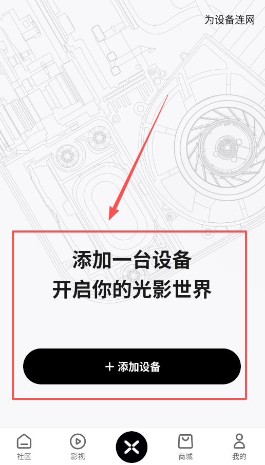 4、添加新设备时,进入“爱机”页面,点击“添加设备”并跟随引导完成联网配置,就能轻松将你的极米产品纳入管理。