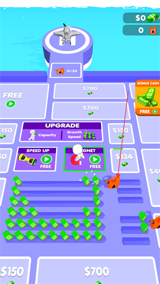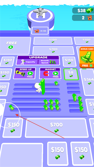 3、点击MAGNET旁的FREE按钮获取道具,提升金钱收集效率。