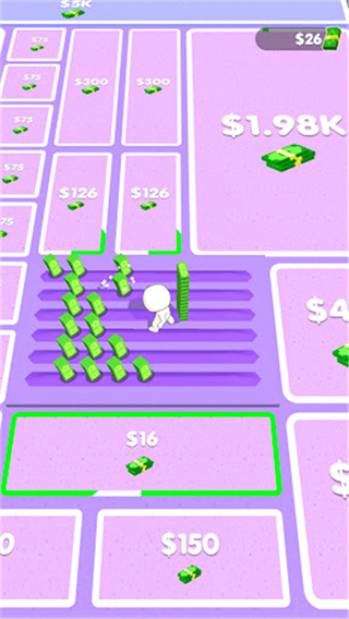 2、角色移动到金钱堆区域,自动收集金钱,清空该区域的金钱资源。
