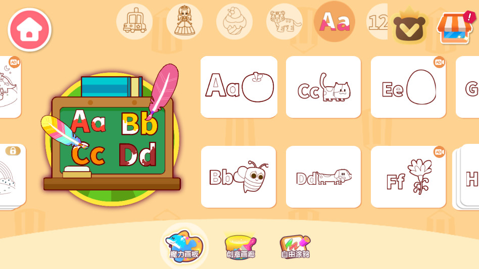 宝宝魔力画笔是一款专为儿童设计的创意涂鸦与填色游戏,在宝宝魔力画笔中,孩子们能够使用丰富多彩的画笔工具,包括经典的蜡笔、油画笔、荧光笔和魔法笔等,帮助他们轻松实现不同的创作效果。应用还提供了多种背景主题,如沙滩、草地、街道等,使孩子们的作品更加生动有趣。特别值得一提的是,荧光涂鸦功能,孩子们可以在深色背景下使用发光画笔和发光贴纸,创造出各种闪亮的图案,带来与众不同的创作体验。