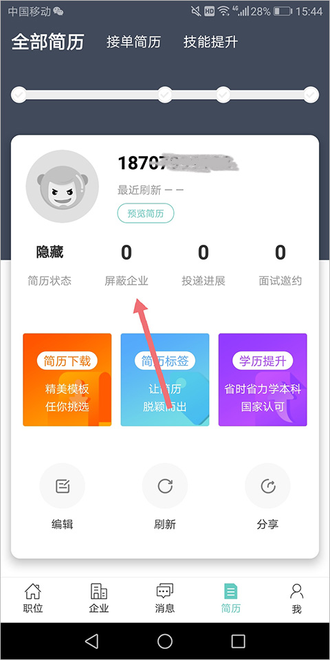 3.在打开的搜索页面中,搜索你所要屏蔽的公司,然后根据下拉框中的公司名称进行依次按需屏蔽或勾选【全选】复选框(下图红色箭头所指区域)进行批量屏蔽。