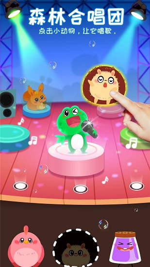 唱!刺猬“哇哇哇”松鼠“啊啊啊”,跟着青蛙一起练,“哆瑞咪发嗦”预备!唱!