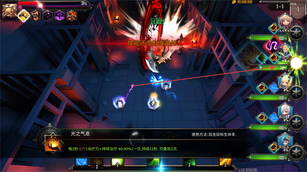 2、等待技能冷却,释放光之气息技能,提升队伍攻击暴击率。
