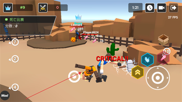 1、操控角色移动,瞄准敌方目标点击攻击,触发暴击伤害。