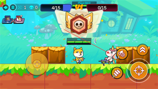 1、操控移动键调整角色位置,点击攻击键攻击敌方,开启对战积累击杀数。