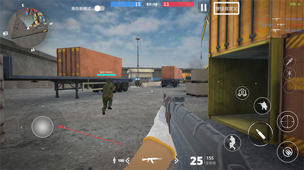 2、利用场景中的掩体如集装箱躲避敌方攻击,同时持续输出,扩大团队分数优势。