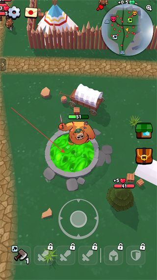 屠夫角色造型憨态可掬,跑动时肚子抖动,被击中时露出委屈表情,彪悍设定与可爱表现形成强烈反差,增添游玩的趣味性。