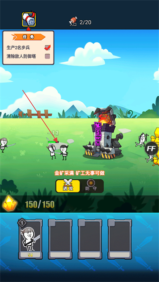 1、按提示需生产2名沙步兵,点击继续推进,准备生产单位抵御敌人。