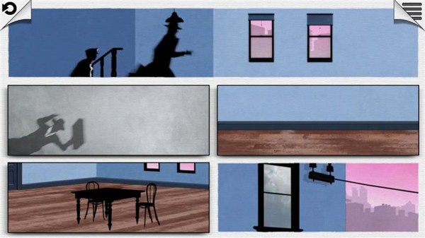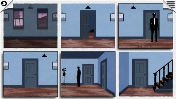 第三关:主人公在众多房间中穿梭,交换插画位置,主人公避开警察,从楼梯逃走。