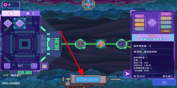 3、靠近进化设备后点击进入,开启与该设备相关的突变进化功能界面,解锁对应的操作选项。