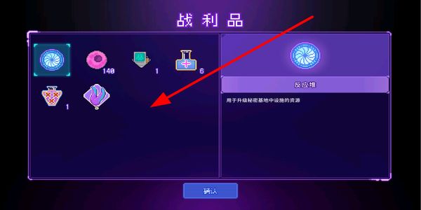 4、战斗结束后会显示战利品界面,查看获得的资源道具,了解其用途,点击确认按钮关闭该界面继续游戏。
