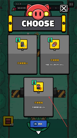 3、战斗后选择炮台强化选项如子弹伤害提升,点击前进进入下一波。