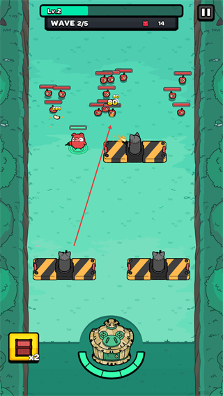 4、用强化后的炮台攻击WAVE2/5的怪物,持续推进关卡进度。