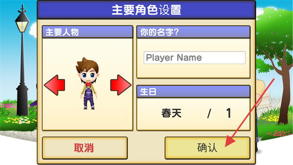 1、在【主要角色设置】界面,通过左右箭头切换角色形象,填写信息后,点击【确认】完成角色创建。