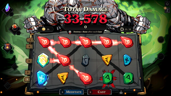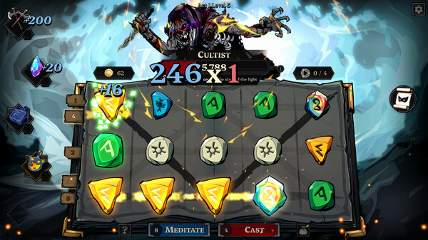 玩家需要构建自己的牌组,并通过匹配符文来施放法术,击败敌人。