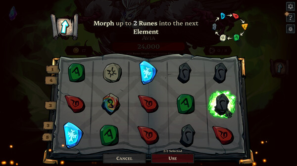 《死而符生Runeborn》中玩家将体验到roguelike元素与牌组构建策略的结合。游戏中的牌组由魔法符文构成,玩家需要在不断变化的法术书中操纵这些符文,以匹配组合来施放强大的法术,击败敌人。