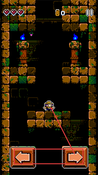 2、处于当前场景时,借助【左右方向键】操控角色移动,在有石柱与火炬的区域里推进探索的进程。