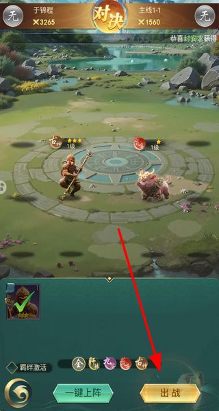 1、玩家在对决界面选择要出战的异兽,确认阵容后点击出战按钮,进入对应的主线关卡战斗。