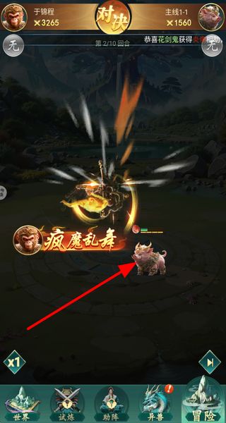 2、战斗过程中异兽会自动释放技能攻击敌方目标,比如释放疯魔乱舞技能对敌人造成伤害。
