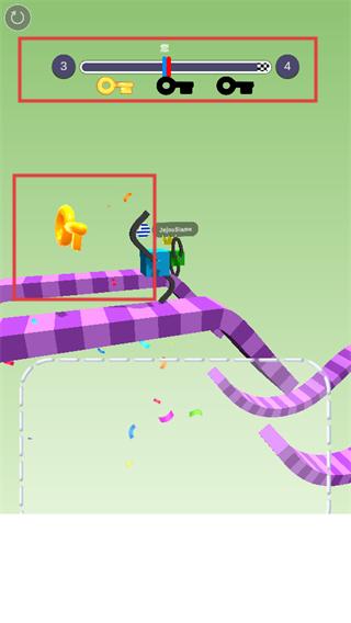 2、进入关卡后,绘制线条为蓝色方块构建攀爬路径,收集钥匙。