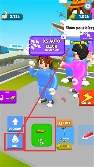 2、找到【BAG】按钮并点击它吧,打开背包后就能查看和选择道具啦,这对提升角色很有帮助哦。