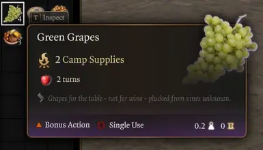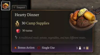《博德之门3》冯格雷夫斯疗愈食品MOD,你有没有想过吃营地的补给品?现在你可以了。营地补给现在可以在战斗内外消耗。它们每回合提供1d4的治疗。(或者说打勾)。每个营地补给都有接近营地补给值的营养值,并且能在该回合内治疗。你会变得“滋养”。感兴趣的小伙伴快来3DM下载吧!