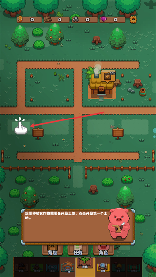 1、根据提示点击地块,选择开垦土地,准备花费金币解锁地块。