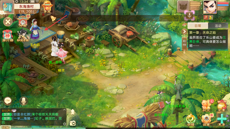 4、根据剧情指引,找到NPC(王大妈)进行互动。