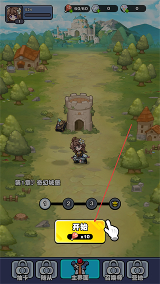 1、选择第1章奇幻城堡,点击开始消耗10体力进入关卡,可切换不同章节挑战。