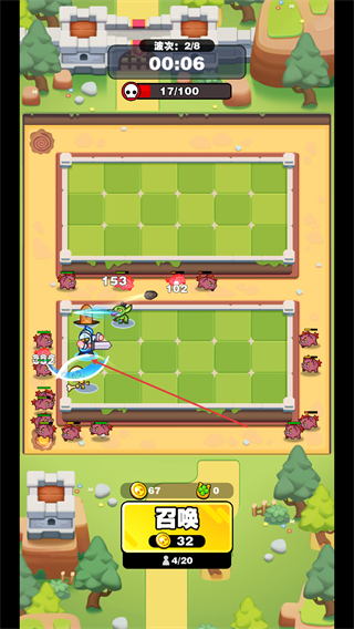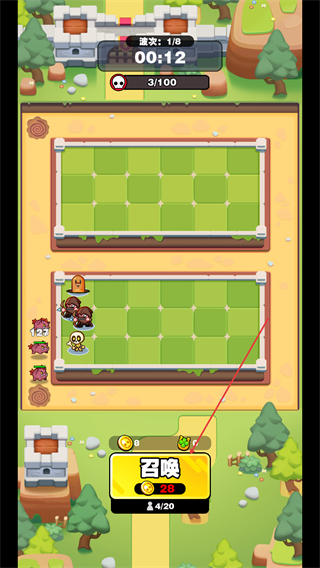 2、进入关卡后,点击召唤消耗28金币召唤单位,布置到战场,推进关卡进度。