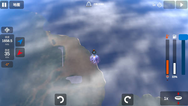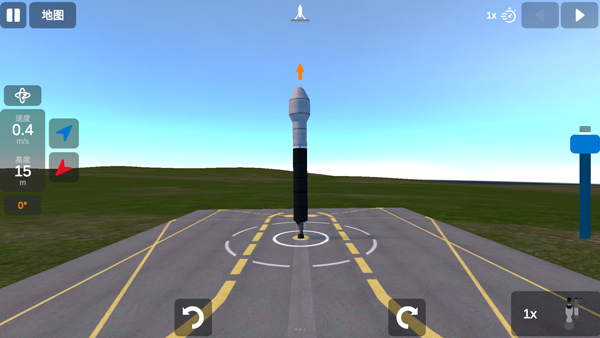 6、到达一定高度后还需再次点击1x,模拟火箭发射舱体掉落;