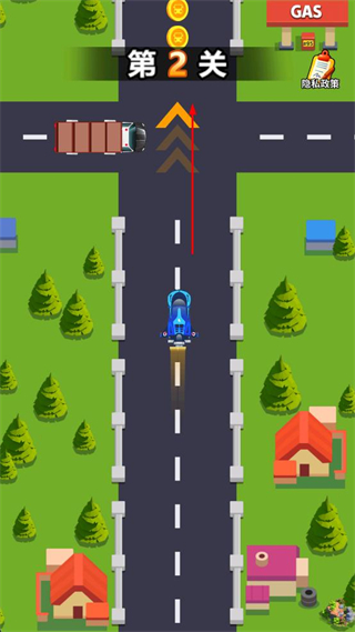 4、持续滑动屏幕控制车辆前进,让车辆抵达带有黑白格的终点区域,完成当前关卡挑战。
