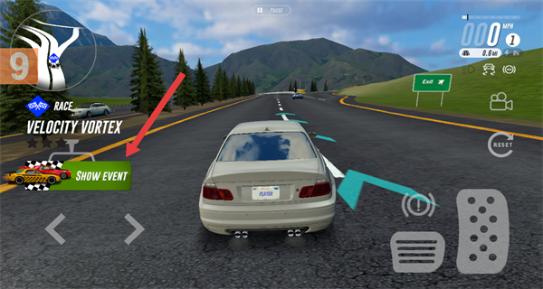3、到达目标比赛地点后,点击界面中的SHOW EVENT按钮,进入赛车比赛的准备界面。