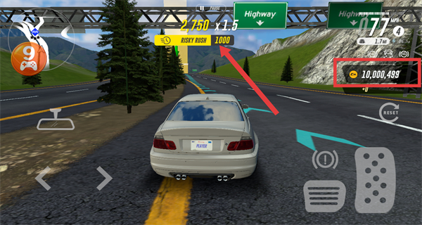 3、进入赛道驾驶游玩,通过完成驾驶相关任务,获取大量的金币奖励。