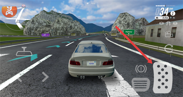 3、进入赛道驾驶界面后,通过点击右侧的油门按键,控制车辆在赛道上行驶。