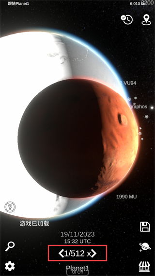 2、在模拟界面点击缩放,可随意调节流动时间速率,查看天体运行状态。