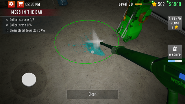 4、工具与技能双升级体系,除了解锁高压水枪、蒸汽清洁机等设备,还能提升清洁效率、污渍处理等技能,适配高难度订单。
