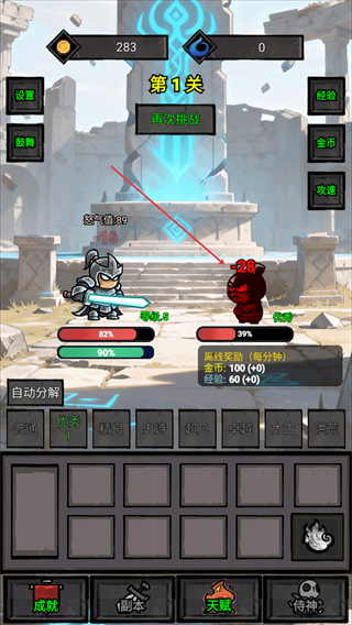 2、放置+策略双重核心玩法,支持无尽关卡自动推进,解放双手享受休闲挂机体验,同时融入自由锻造等深度策略内容,每一次锻造配方选择、侍神阵容搭配都影响战力上限。