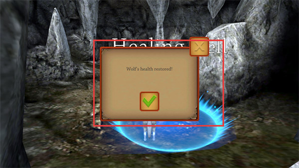 2、成功恢复生命值后会弹出提示框,显示【Wolf'shealthrestored!】,点击确认即可继续游戏进程。