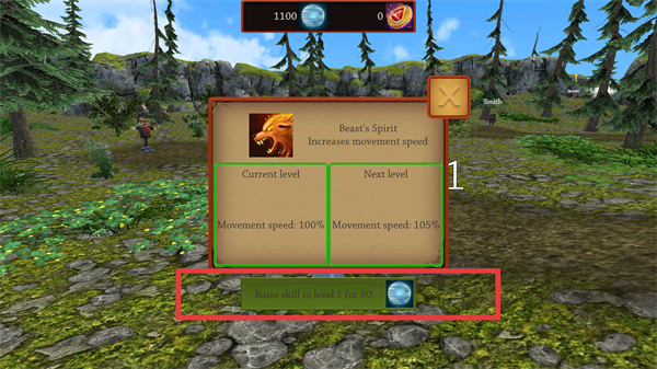 4、选择【Beast'sSpirit】技能,消耗80个蓝色资源可升级,提升移动速度增强角色机动性。