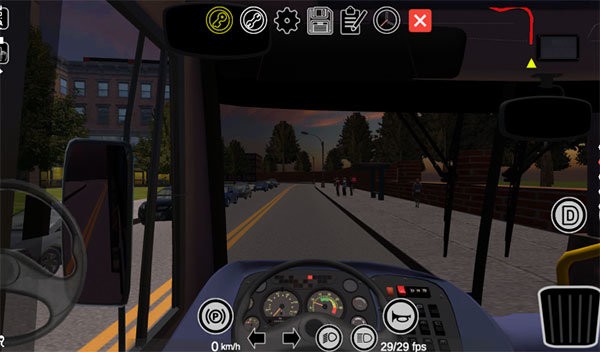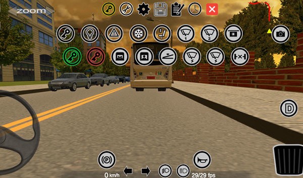 5、点击左上角相机按钮切换驾驶视角,挂挡后按住油门即可启动巴士。