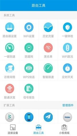 极路由一款强大的网络管理工具,通过这款软件连接上自家的网络之后用户就可以尝试在工具中看到自家网络的速度、上传速度、下载速度、连接状况等等信息让用户近距离更好的查看自家网络的详细状况,非常的方便!