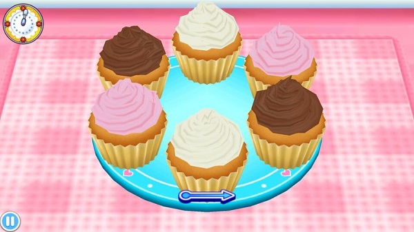 首页上我们可以看到多种不同的菜,点击某一种菜可以选择制作、练习或是搭配。制作是模拟一道菜的制作过程,将其分割为几个部分,玩家需要按照指示一一完成,每完成一个步骤都会根据完成的质量被点评,最终会得到一个得分。练习过程顾名思义就是并不出成品的模拟。搭配就是可以选择不同的菜品进行搭配,但是并不能够随意的进行搭配,有可能会出现越搭配越糟糕的情况。接下来以纸杯蛋糕为例,介绍一下这一部分的具体流程。