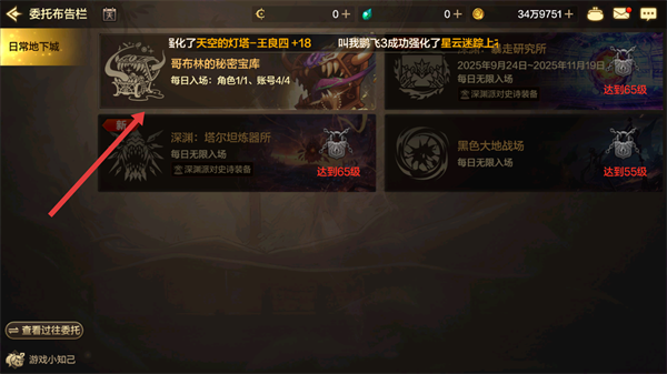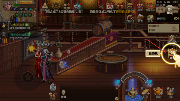 1、在游戏界面点击【委托】,进入委托布告栏。