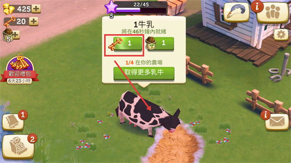 4、消耗【1】把钥匙加速完成,获取牛奶以满足订单需求。