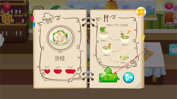 3、提供了海量不同风味的菜肴供学习烹饪,从准备食材到完成装盘,每一步都有细致模拟,体验当主厨的成就感。