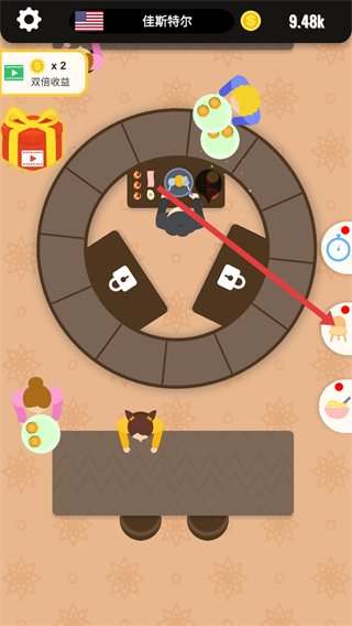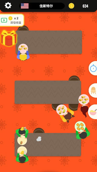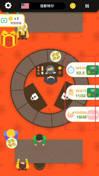 4、顾客用餐结束后,收集生成的金币奖励。